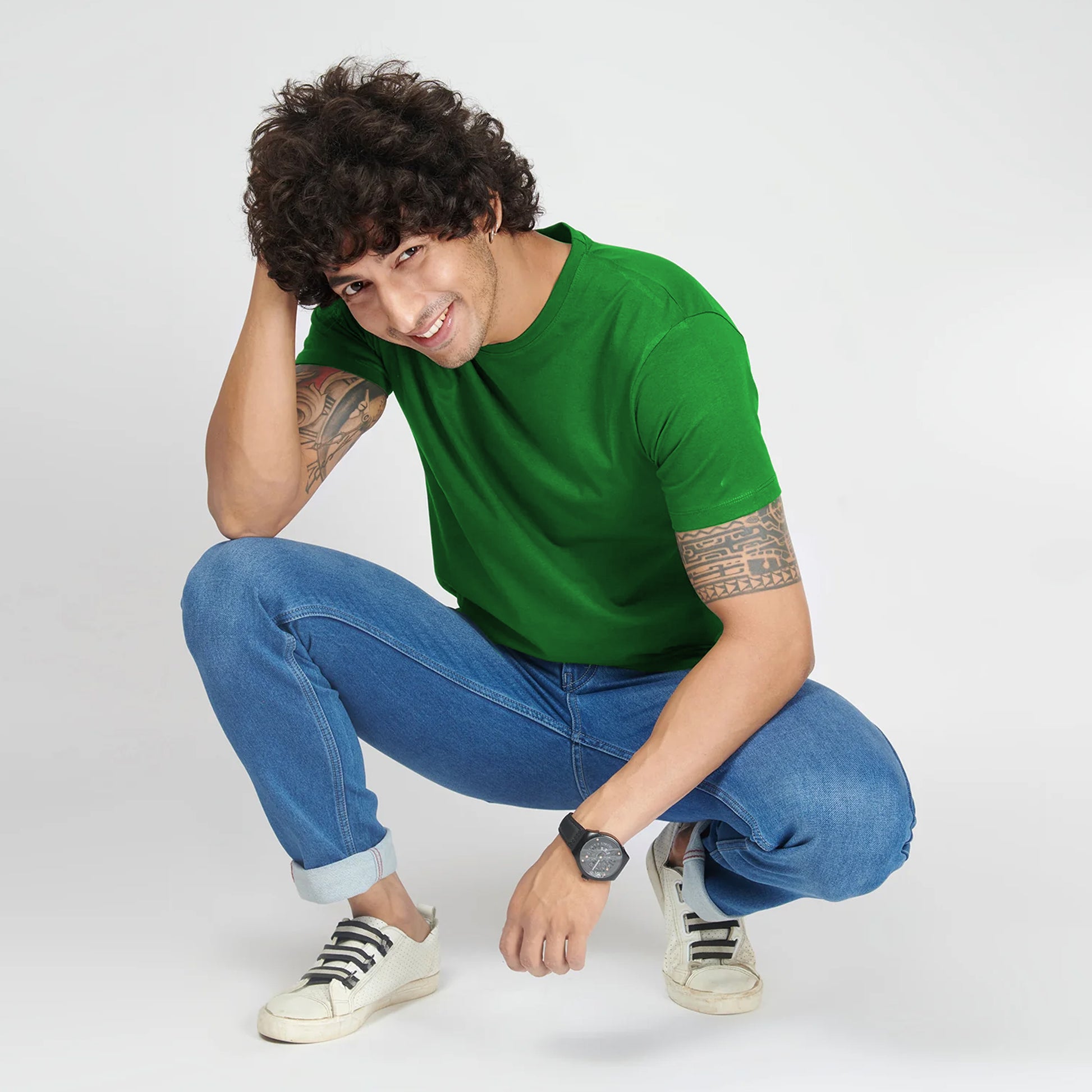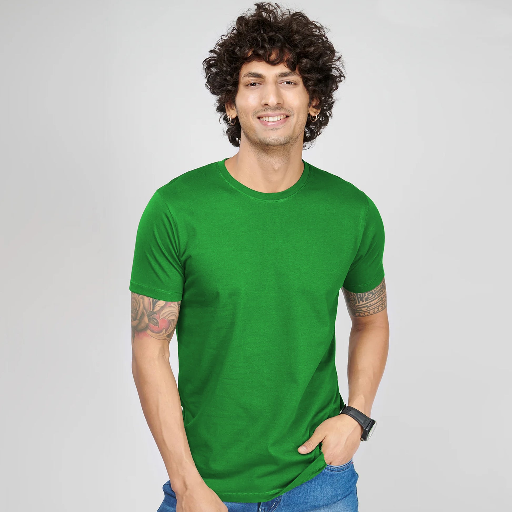 Basic Dark Green Half Sleeves T-Shirt