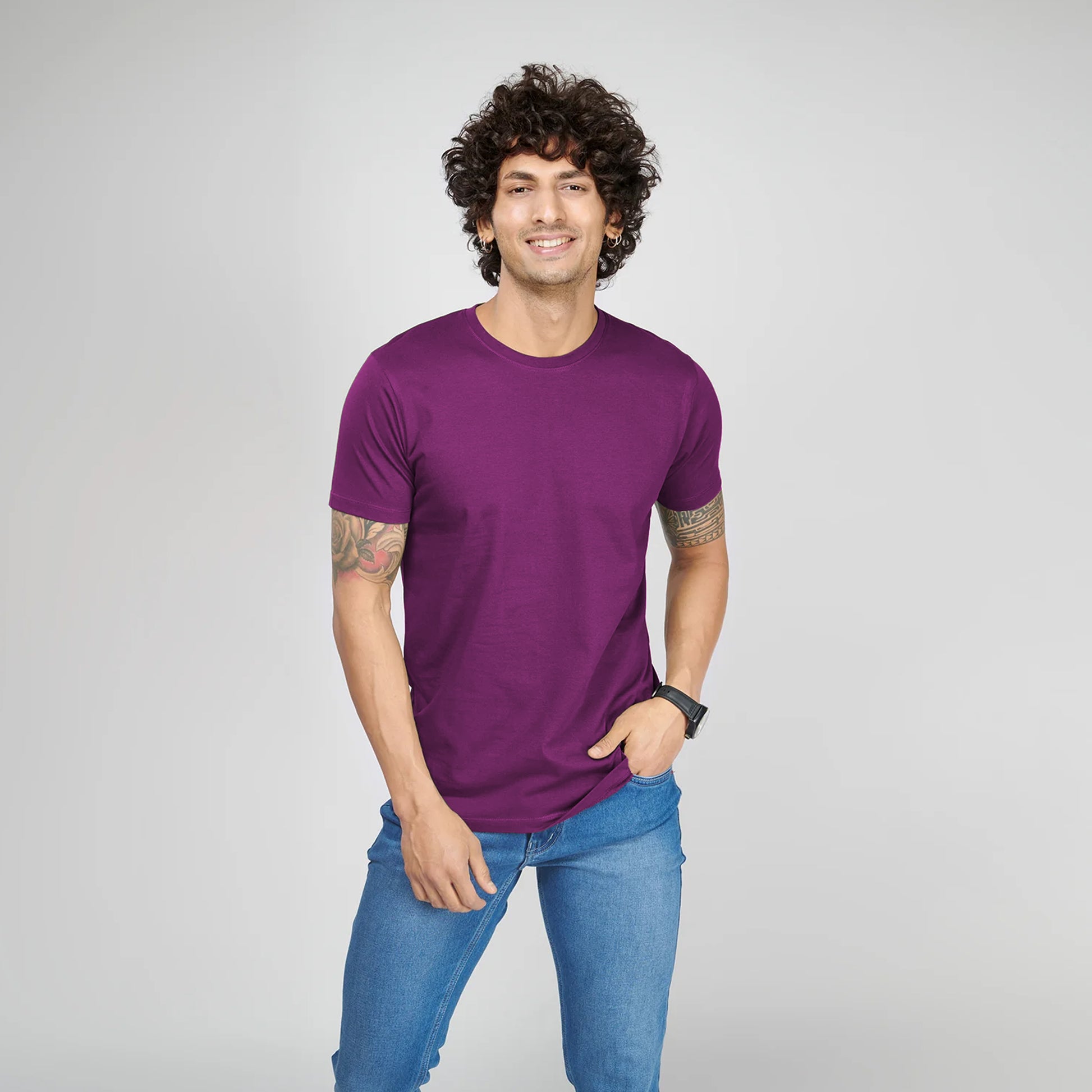 Basic Dark Purple Half Sleeves Crew T-Shirt