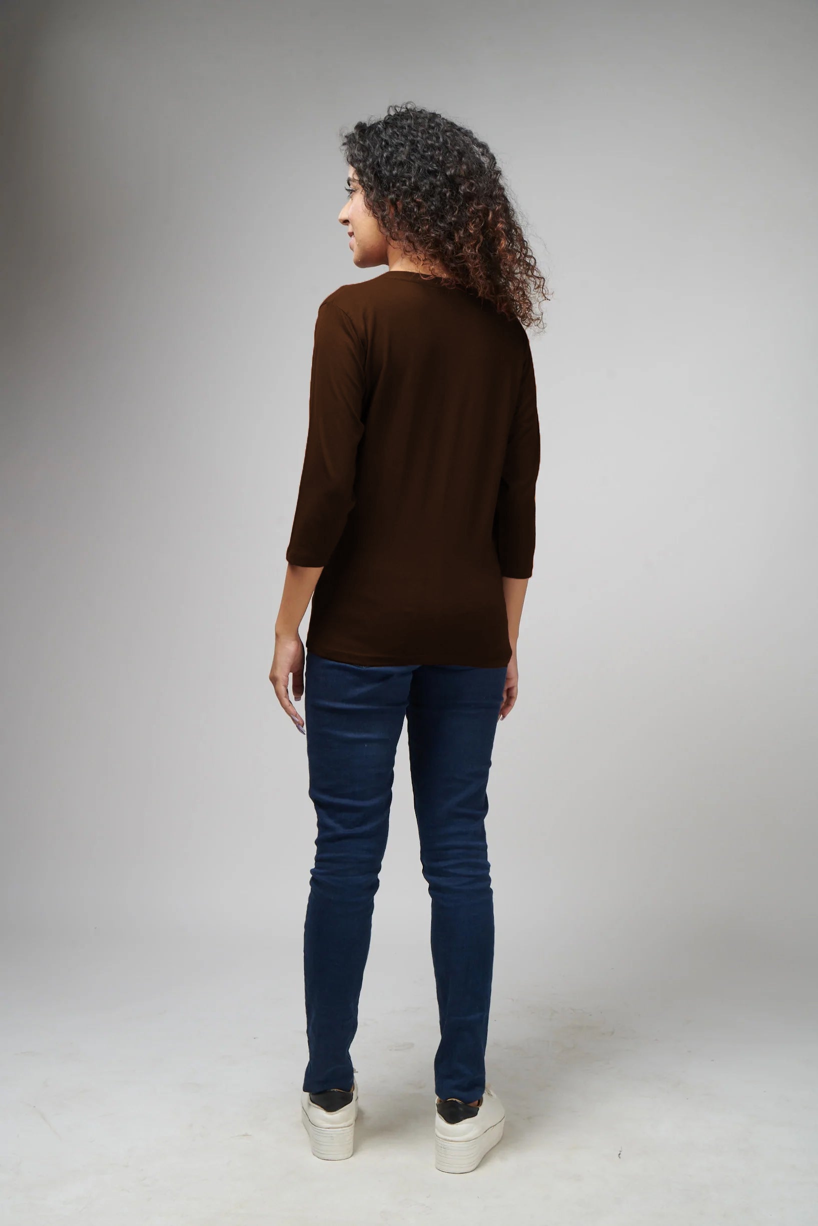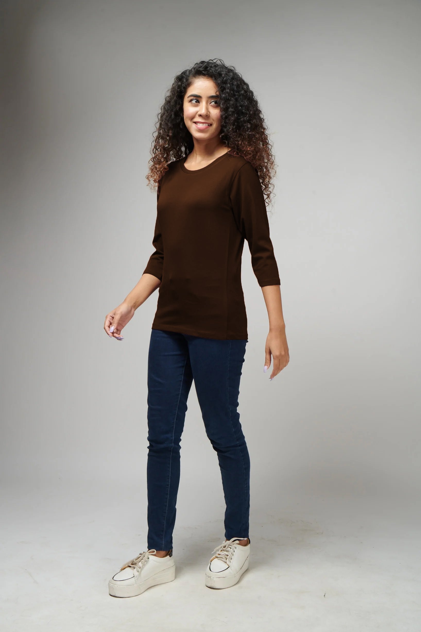 Women's Basic Brown Full Sleeves T-Shirt